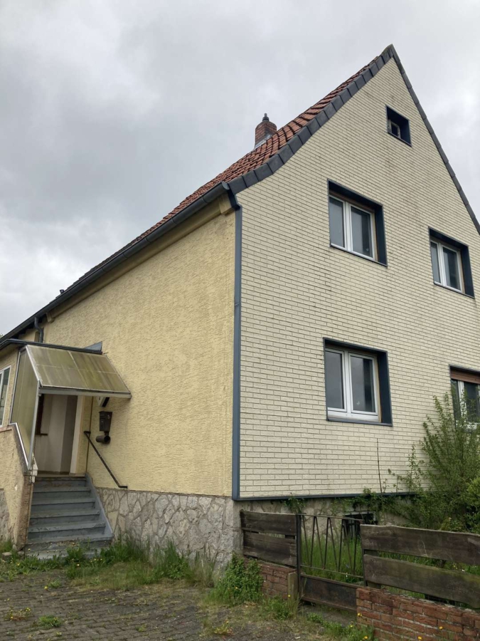 Ursprüngliche Konzeption als freistehendes, eingeschossiges Einfamilienhaus (straßenseitige Haushälfte) mit Dachgeschossausbau und Vollunterkellerung, Ursprungsbaujahr unbekannt, Erweiterung zum Doppelhaus 1978 durch einen zweigeschossigen Anbau (rückwärtige Haushälfte) ohne Unterkellerung und ohne Dachgeschossausbau, Massivbauweise, Mauerwerkswände, Massiv- und Holzbalkendecken, Putzfassade mit Anstrich, westliche Giebelfassade mit Klinkerriemchen, straßenseitig mit Natursteinsockel, Satteldach, eine Schleppgaube, Drempelhöhe ca. 1 m (straßenseitige Haushälfte), Holzdachstuhl, Tondachziegel mit Mörtelverstrich bzw. Holzunterschalung (Harzer Doppeldach), Holz- und Kunststofffenster mit Isolierverglasung, teilweise Rollläden, Ölzentralheizung, Plattenheizkörper, Teppichboden und Fliesen als Bodenbeläge, einfache bis mittlere Ausstattung, durchschnittlicher Unterhaltungszustand.